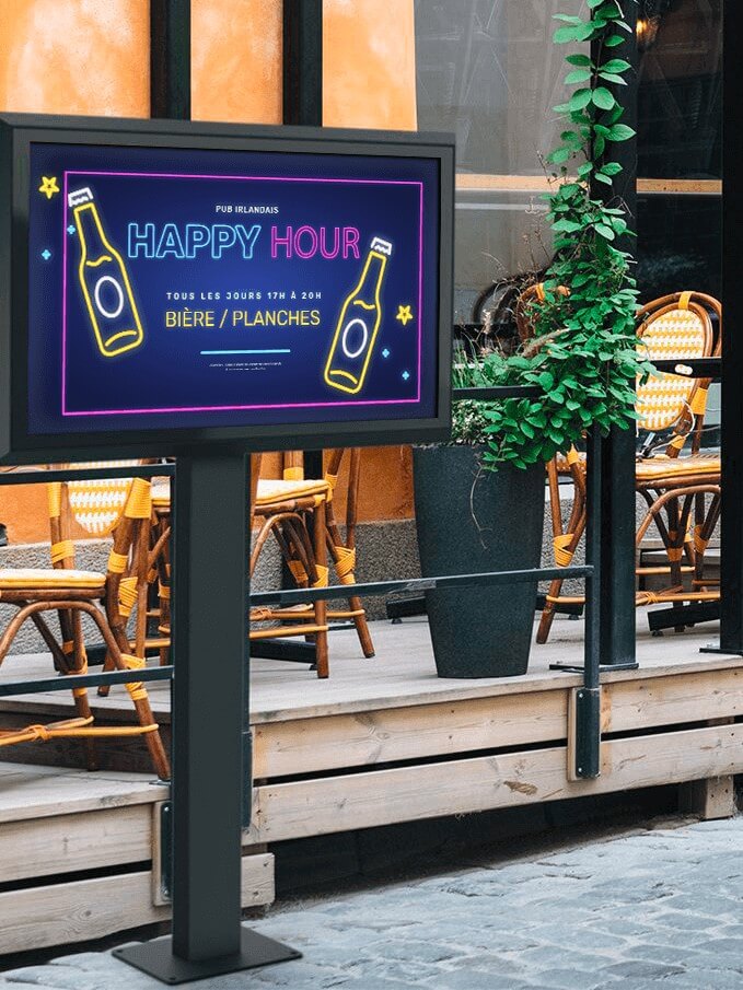L’impact visuel est également un atout majeur. En diffusant des contenus dynamiques, qu’il s’agisse de cocktails en vidéo, d’animations graphiques ou de messages ciblés, vous captez immédiatement l’attention des clients, que ce soit depuis l’intérieur ou depuis la rue. Vos écrans deviennent des vitrines vivantes, attirant de nouveaux clients tout en renforçant le lien avec ceux déjà présents.