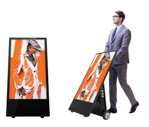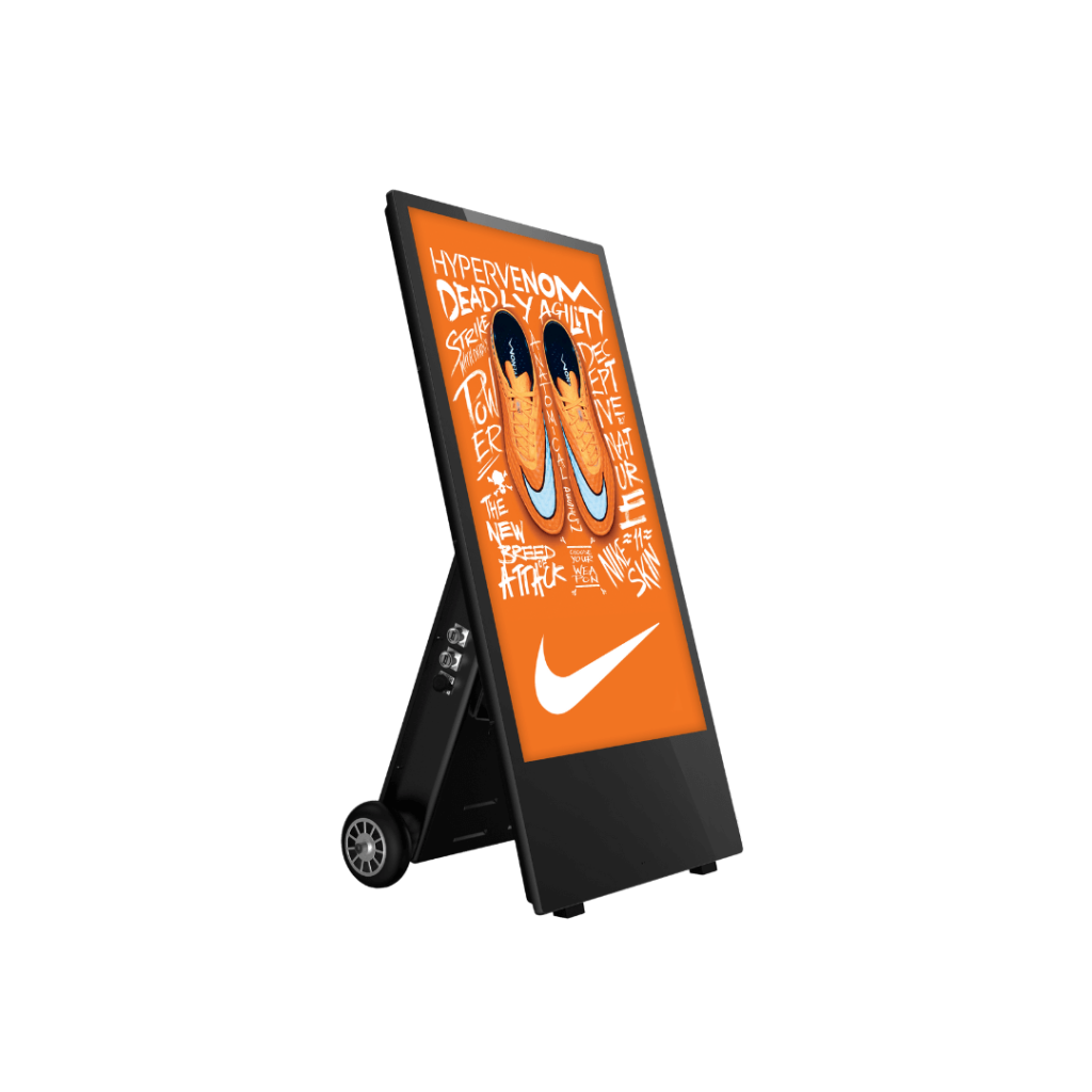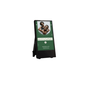 Le chevalet numérique se distingue du totem digital principalement par sa portabilité et sa structure. Là où les totems sont souvent fixes, plus imposants et ancrés au sol, le chevalet est léger, mobile, et facile à déployer dans différents projets d’affichage. Il peut être replié, déplacé ou réorienté selon les besoins de la communication ou de l’événement, tout en conservant les qualités visuelles d’un moniteur professionnel.